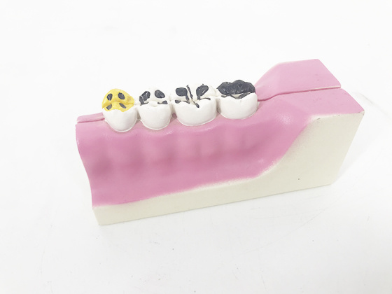 Features: The model includes 3 molar sections and 6 parts, and displays the structure of molar and the dental caries development process; there are 10 parts of indication signs Material: Imported PVC and paint, color matching by computer, advanced color painting