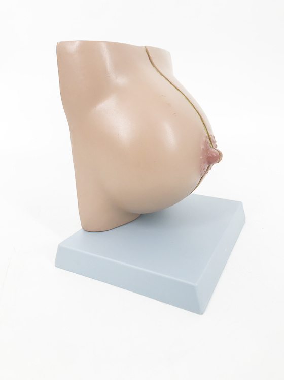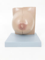 This anatomical model shows the internal and external structure of a female breast. This model is made of 2 parts that can be opened up.